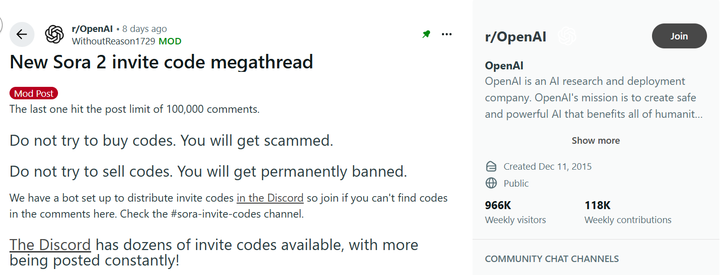 Another great way to find fresh invite codes is through Reddit. Users often post valid, unused codes in active threads such as: