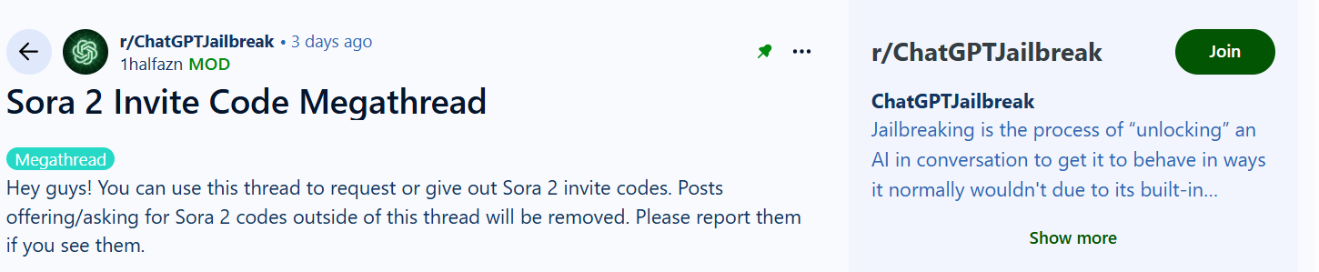 Sora 2 Invite Code Megathread on r/ChatGPTJailbreak